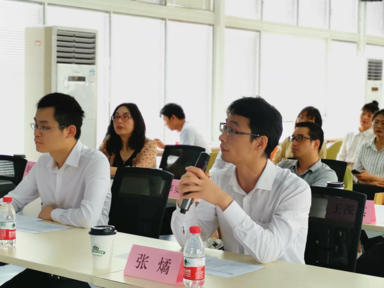 会议开始,欧万发介绍了本次评审会的选拔方式和评分细则。本次硕士学术年会暨新产业奖学金评审会分为研究生学术海报交流展和现场答辩,共有10名同学参加了本次答辩。答辩同学分别从科研经历、员工工作、社会实践等方面进行了陈述,5分钟的个人展示之后由评委老师进行2分钟的提问。