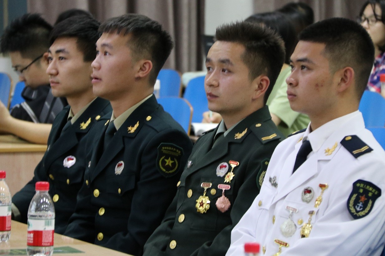 最后国防教育中心陈铭涛老师总结发言,并就同学们的提问进行解答。就同学们关心的应征入伍身体条件,入伍政策中有关经济待遇、复学升学等问题进行了详细回答。