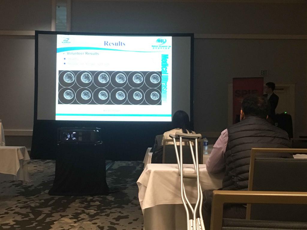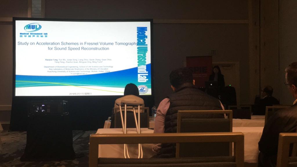 (通讯员 方小悦)2019年2月17-21日,SPIE Medical Imaging国际学术年会在美国圣地亚哥隆重举行。2月18日,必威西汉姆联官网丁明跃教授领导的乳腺超声断层成像团队博士生周亮和方小悦分别在超声成像和层析(Ultrasound imaging and tomography)分会场应邀做了口头报告。周亮就“新一代乳腺超声断层成像硬件系统开发的新进展”做了报告,方小悦则报告了“图像重建算法的加速实现和算法创新”。两人的报告引起了与会人员的广泛关注。