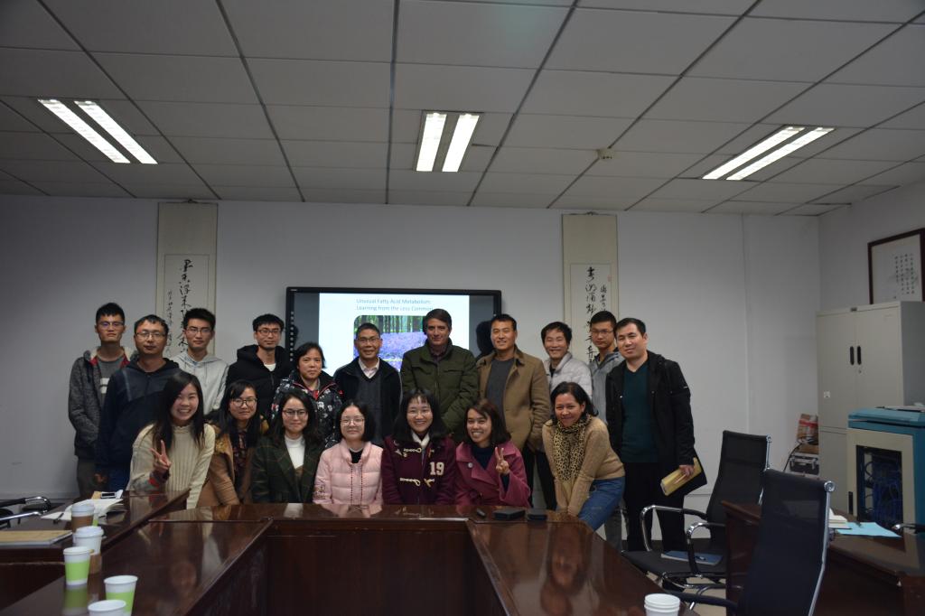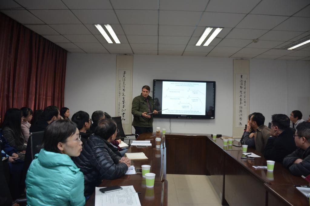 (通讯员 张凯)12月4日下午,美国内布拉斯加大学林肯分校著名油脂研究专家Edgar Cahoon教授在东十一楼717会议室做精彩的前沿学术报告,吸引了众多老师和研究生参加。 栗茂腾教授对Edgar Cahoon教授的来访表达了热烈欢迎,并对其研究领域、科研经历以及学术成果进行了介绍。