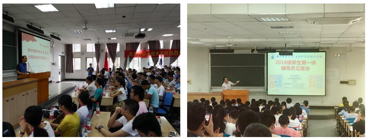 图9:丁明跃教授和张珞颖教授给新生开展“生命炫酷堂”精彩讲座