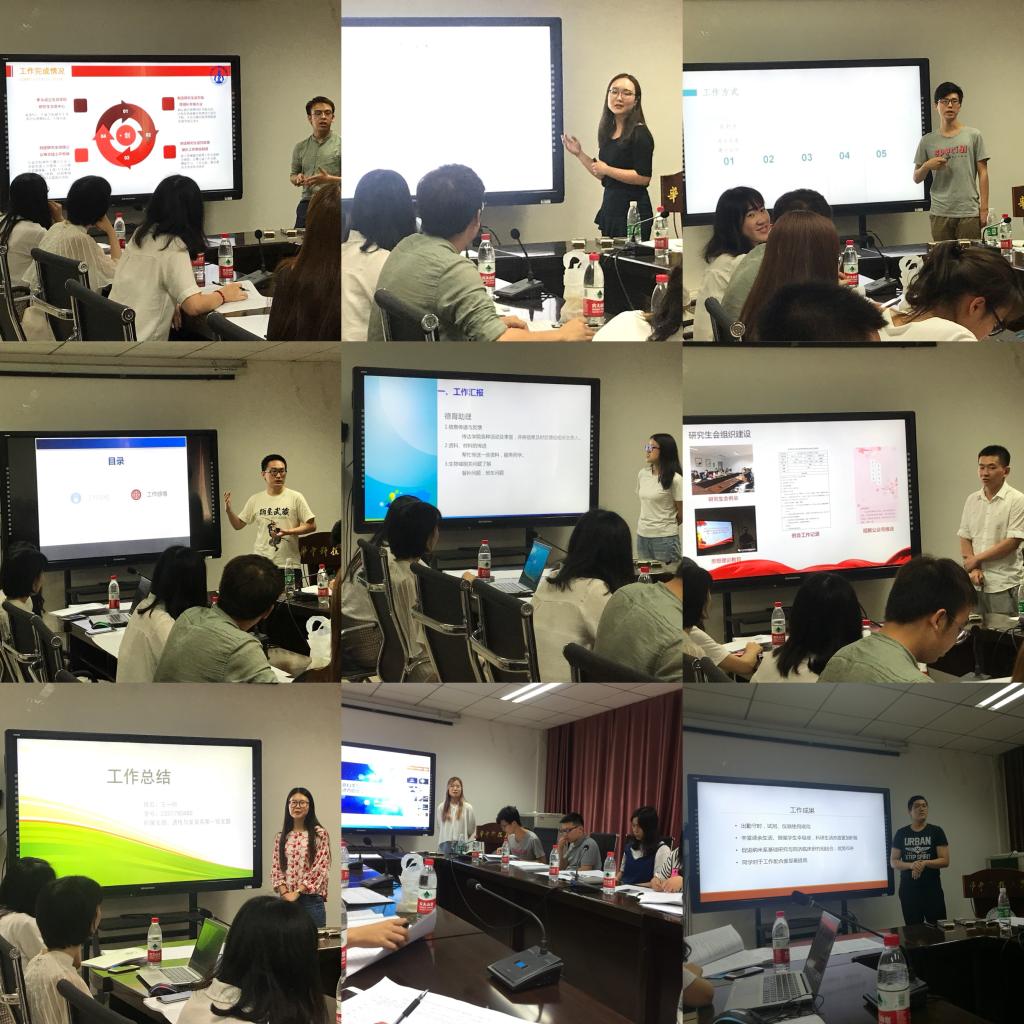 随后,研究生德育助理按顺序依次上台作述职汇报。每位研究生德育助理都总结了过去一年里的个人学习、工作的深刻感悟。其中,党建德育助理何帅丞将“张口能讲、提笔能写、坐下能谋、起身能干”作为恪守的信条要求自己;周钰以“谨慎谦虚、不骄不躁;积极乐观、艰苦奋斗”作为自己的工作箴言;何珍艳谈到化被动为主动是其本学期最大的进步;王一帆以“身边的人有多优秀,自己才有可能多优秀”指出拥有一个优秀的团队的重要性。