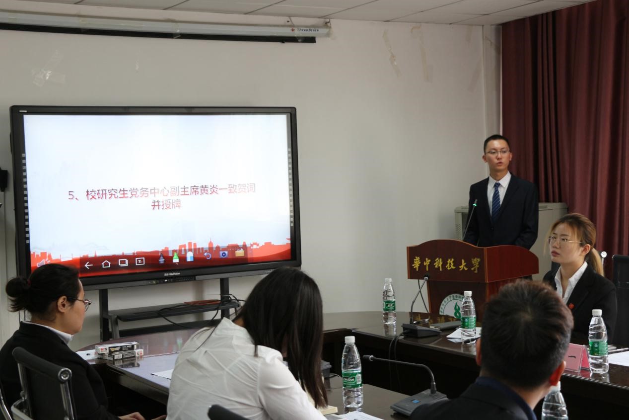 大会在全体参会同志响亮的国歌声中拉开序幕。研究生辅导员欧万发致开幕词。他指出党务中心成立的必要性和意义,应进一步增强研究生党员的身份意识,引导研究生党员建立正确的价值观,勇于承担时代使命,为共圆中国梦而奋斗。