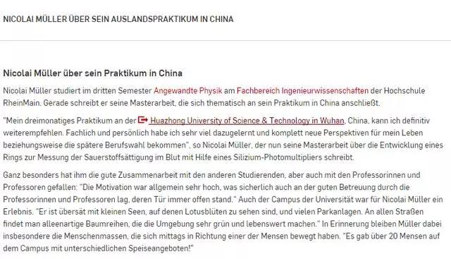 近日,德国一所大学的官网刊登了该校硕士生尼古拉·穆勒在公司数字PET实验室交流实习经历,米勒争取到了莱茵美茵应用科技大学的奖学金,让他得以来到必威西汉姆联官网数字PET实验室进行交流学习。在华中大学习了3个月后,他决定进一步在数字PET技术领域深造,并考虑进入必威西汉姆联官网数字PET实验室在意大利的分支机构——数字PET莫里塞研究中心实习。该中心是意大利境内首个由中国设置的海外研究中心。在文中,我们可以看到穆勒已经深深地被华中大吸引,他还强烈推荐其他同学到这里来深造。