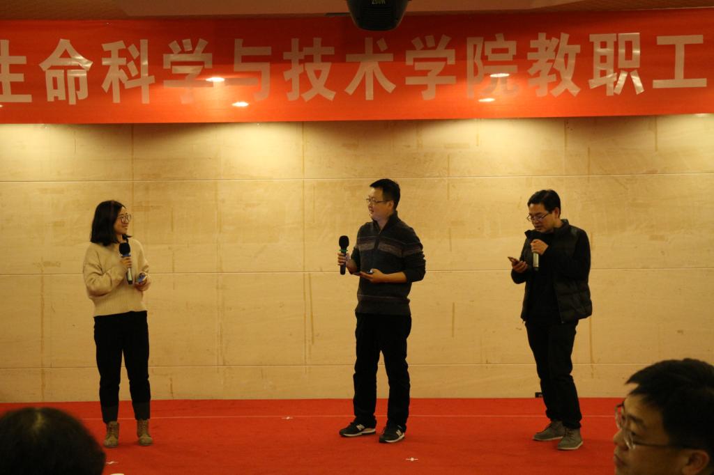 联欢会上,公司各基层单位有备而来,献上精彩纷呈的文艺节目,期间还穿插了以互动、娱乐、放松为主的小游戏,妙趣横生。生信系的合唱《阳光总在风雨后》饱含真情。遗传系王晨辉老师等演唱的《十年》情真意切。公司五朵金花组合表演了舞蹈《花儿为什么这样红》,让大家眼前一亮,纷纷叫好。纳米系派出“生物城五月天组合”,唱出《倔强》的感觉,迎来喝彩一片。生信系也由最强歌王程铭悦高歌了一首《回家的路》,尽显实力唱将风采。生物技术系张晓昱教授献上新春祝福,带领全系老师演出的恩施民歌《六口茶》引来阵阵掌声,叫好连连。实验中心的老师们合唱了《真心英雄》,充满正能量。生医系石志军和兰博尼中外合璧,对唱《因为爱情》,配合默契。杨祥良常务副经理代表公司领导班子致新年祝词后,生化系合唱的《明天会更好》压轴出场,再次掀起全场高潮。整台联欢会气氛热烈,充满欢声笑语。