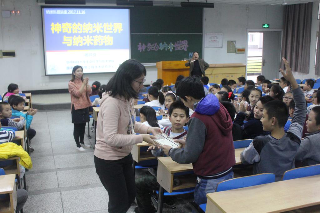 必威西汉姆联官网常务副经理杨祥良教授从何为纳米、自然界中的纳米、纳米艺术、抗肿瘤纳米药物等方面用有趣易懂的语言跟同学们做了关于《神奇的纳米世界》的精彩科普报告。同学们也从什么是科学发现、如何发现、奥斯卡大片与生物技术的关联,结合电影大片了解了《科学发现与生物技术揭示奥斯卡大片的奥秘》。同学们积极参与报告会中,时常与老师互动,举手提问,会场气氛热烈。