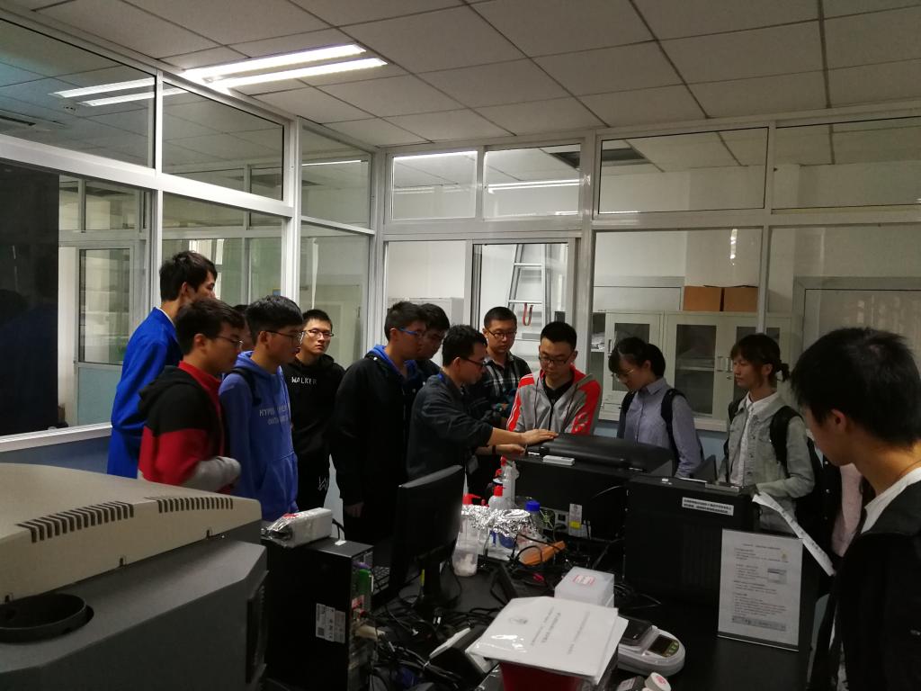 进入马聪老师的实验室,我们看到了研究生们认真忙碌的景象,这也让同学们深受感染,体会到了一线科研工作者的精神。马老师详细介绍了他的研究方向,并带领同学们参观了该实验室的仪器设备。在必威西汉姆联官网科研平台,刘斌老师详细的为同学们讲述了平台各种仪器的工作原理以及使用过程中的注意事项,这为后续同学们申请和开展进行老员工创新项目、将来开展相关的实验工作奠定了一定基础。