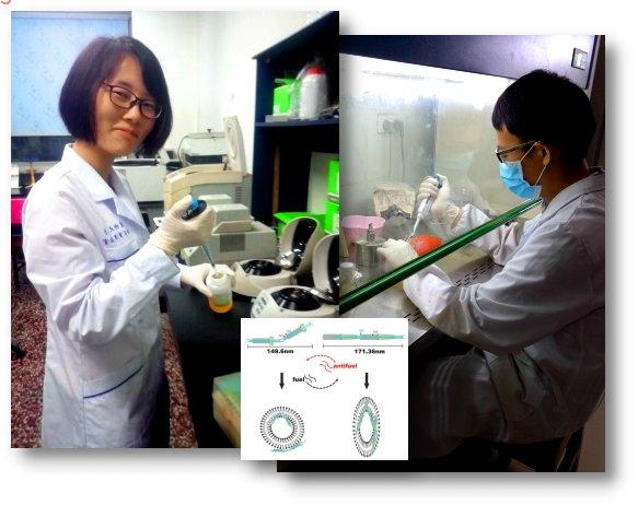 这篇论文主要通过“DNA折纸术”这一技术手段,构建了由内部中心轴和外部滑动管组成的多聚体DNA纳米结构,单体外管在DNA动力链的触发诱导下能够沿着内部中心轴滑动,从而实现该纳米器件在微观尺度的柔性/刚性状态之间转换。该纳米结构的形态转换,还被证明能够有效调节其所附着物质的微观结构刚性。由于微观结构刚性对于细胞增殖和功能十分重要,此研究结果为使用DNA纳米结构调节细胞刚性从而改变其生理状态提供了理论与实践基础。该论文研究内容延续自BIOMOD HUST-China团队2016年参与在加州大学旧金山分校举办的BIOMOD国际生物分子设计大赛并夺得银奖的参赛项目,赛后经团队师生对项目研究成果的重新整理和不断补充与完善,指导教师鼓励员工投稿高水平期刊,并在多次修订后最终得以在Small发表。该论文的发表将生命科学与技术创新基地本科生创新团队的研究水平推向了新的高度。