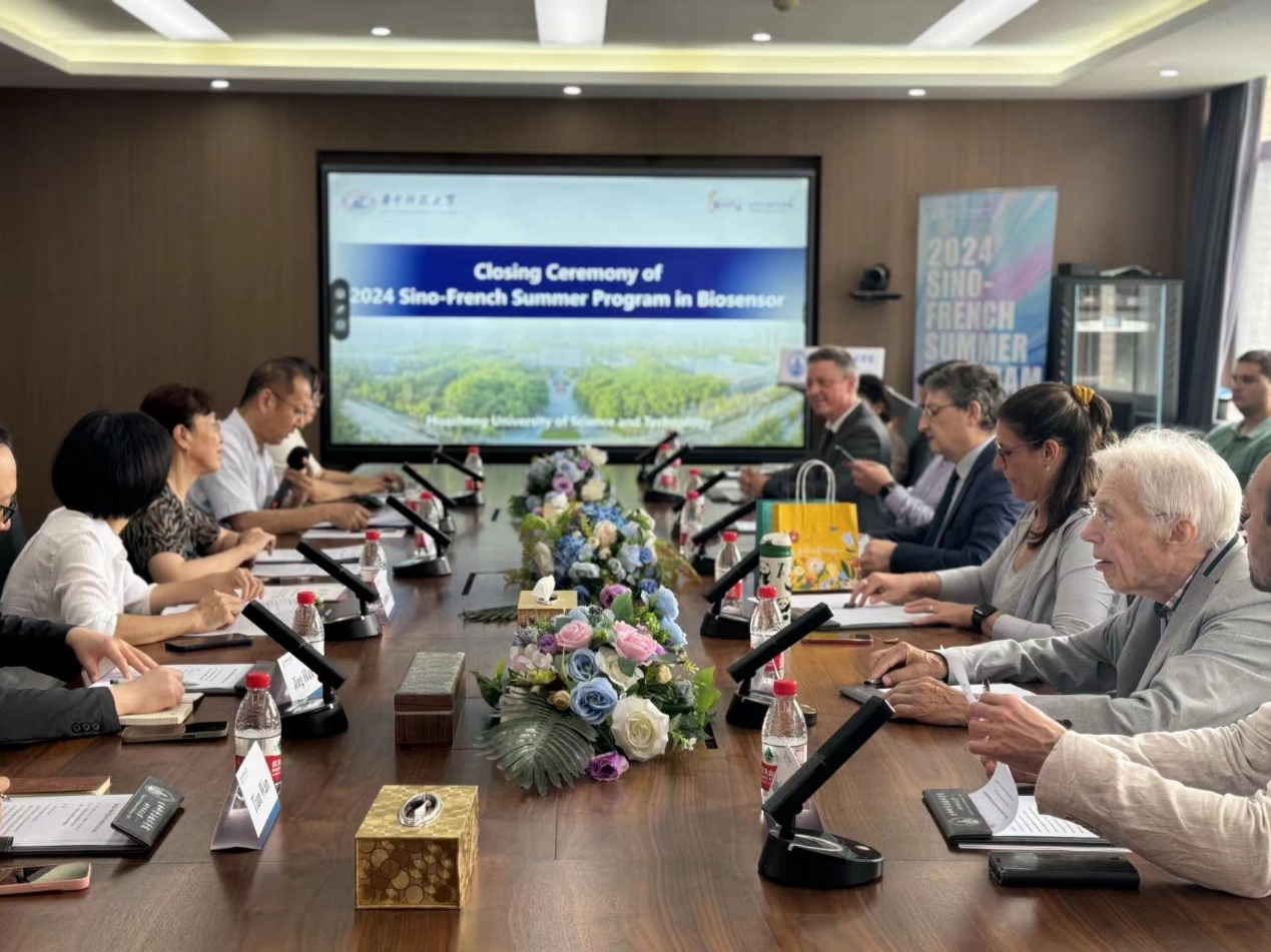 6月26日,2024中法感知生物学暑期研学夏令营闭幕式在​221会议室举行。公司副董事长湛毅青、法国埃夫里-巴黎萨克雷大学董事长Vincent BOUHIER、副董事长Christelle MONVILLE、Hichem ARIOUI出席了仪式。会议由公司经理刘剑峰主持。