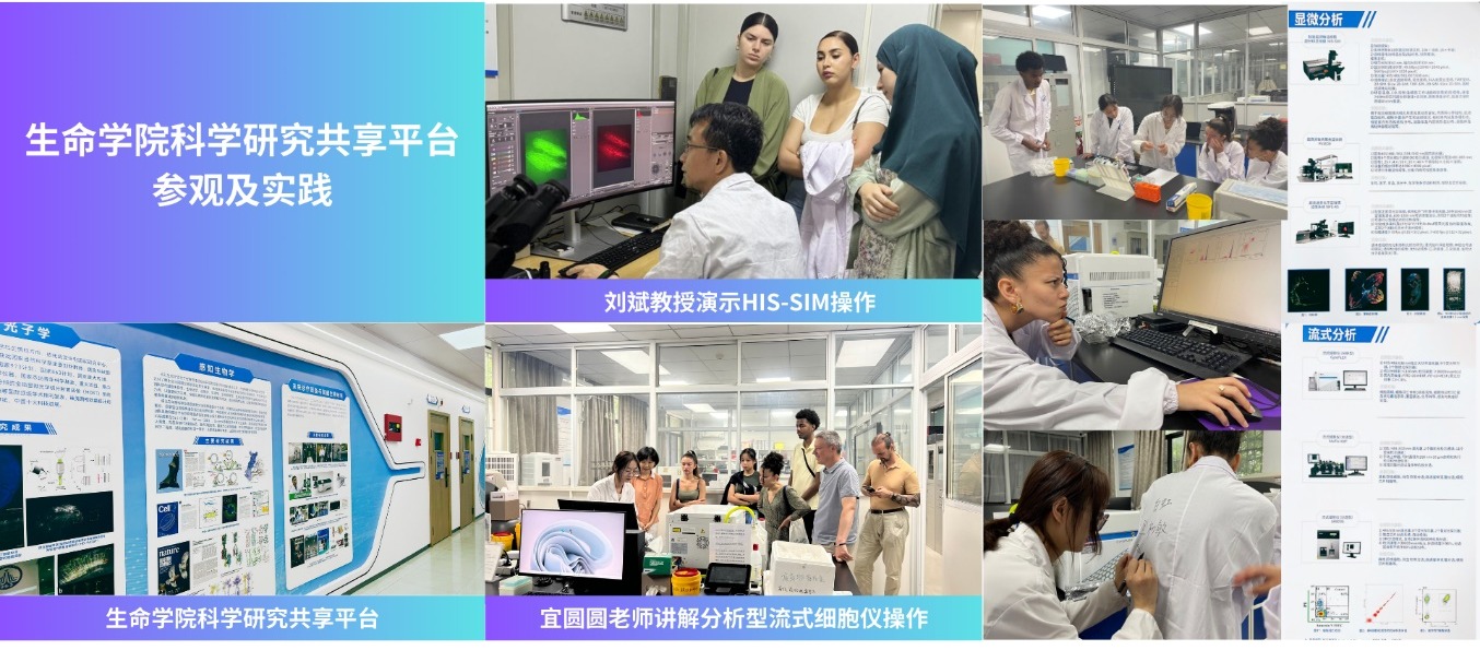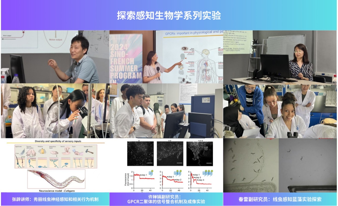 在科学实验方面,在多位资深教师的悉心引领下,同学们接触到了多种的先进的实验技术,并先后8次走进公司虚拟仿真实验教学中心和科研共享平台亲自操作。许婵娟副研究员讲解了GPCR相关前沿研究并演示了钙信号成像实验;张辟讲师阐释了采用秀丽线虫作为模式生物的神经感知生物学研究;跟随春雷副研究员的指引,实操公司中法iGEM战队银奖项目——线虫感知蓝藻实验。在公司科研共享平台,在宜原原老师的带领下,全面熟悉了实验平台的各项设施与资源;与刘斌教授学习使用流式细胞仪,并观看SIM成像实验演示。Kenan OGGAD同学表示,这段实验与实践的宝贵经历,不仅让他收获了来自实验中心师生团队的温暖帮助与专业指导,更在每一次动手操作与科学探索中激发了诸多启发,留下了深刻印象。