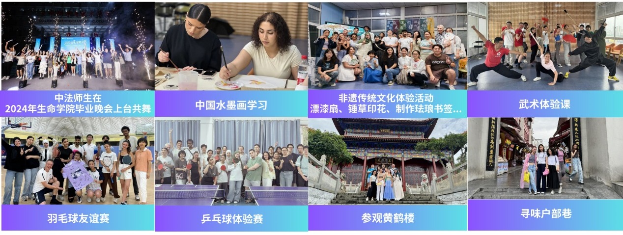 在文化体验上,同学们参加了2024届毕业晚会,中法师生上台共舞,其乐融融;在中国非物质文化遗产体验系列活动中,中法师生品茗茶、漂漆扇、锤草印花、初探国画、首练武术,体会中华文化的博大精深;在羽毛球友谊赛上展开切磋,增进友谊,并在球衣上签名留念;在乒乓球友谊赛上,法方员工向必威西汉姆联官网的同学们学习握拍和发球要领,并邀请埃夫里-巴黎萨克雷大学董事长Vincent BOUHIER教授参与比赛;在红色之旅特别活动中,同学们参观武汉中共中央机关旧址纪念馆,聆听中国革命先烈无私奉献的故事,体验传统服饰文化,漫步黎黄陂路历史文化风貌街,亲身感受到了武汉这座英雄城市的历史底蕴。