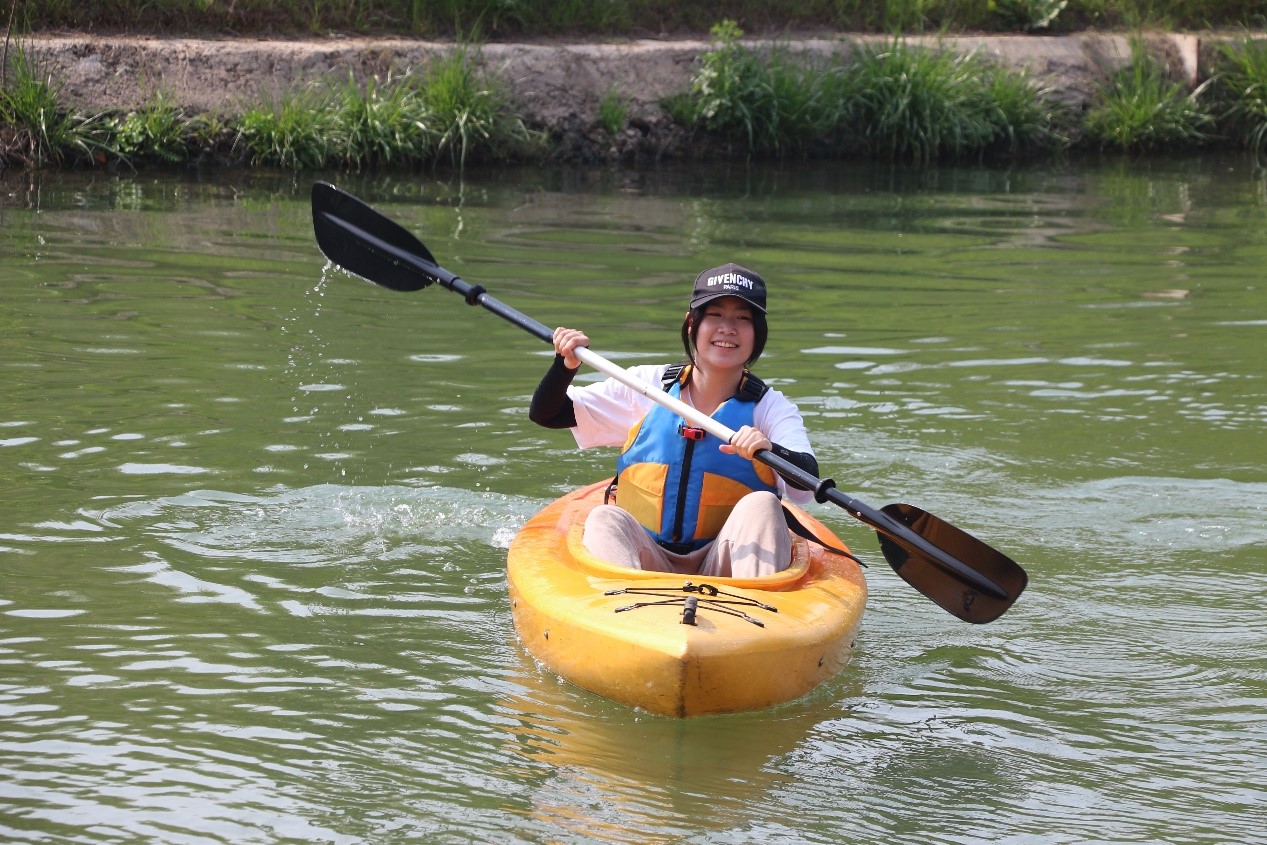A:哈喽,大家好!我是来自生物科学(中外合作办学)2101班的刘镟。我的体育选课是户外运动。这个学期能有机会在湖溪河上参加水上课程真的特别开心。