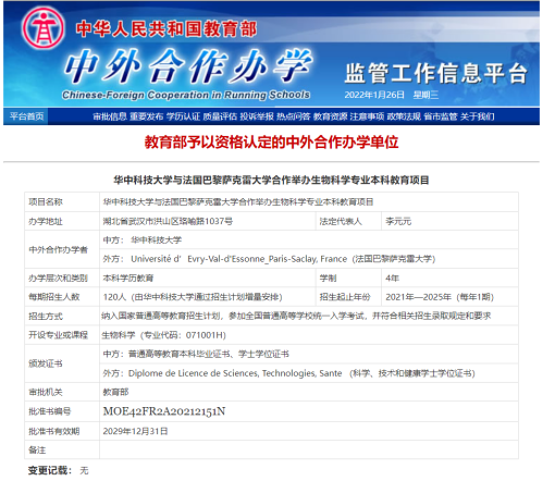 此项目是教育部批准的正式中外合作办学项目。教育部批准书编号为MOE42FR2A20212151N。