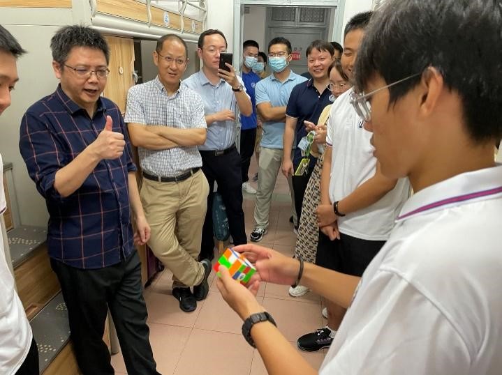 班级同学为走访宿舍的院领导及教师班主任表演还原魔方,增进师生情谊
