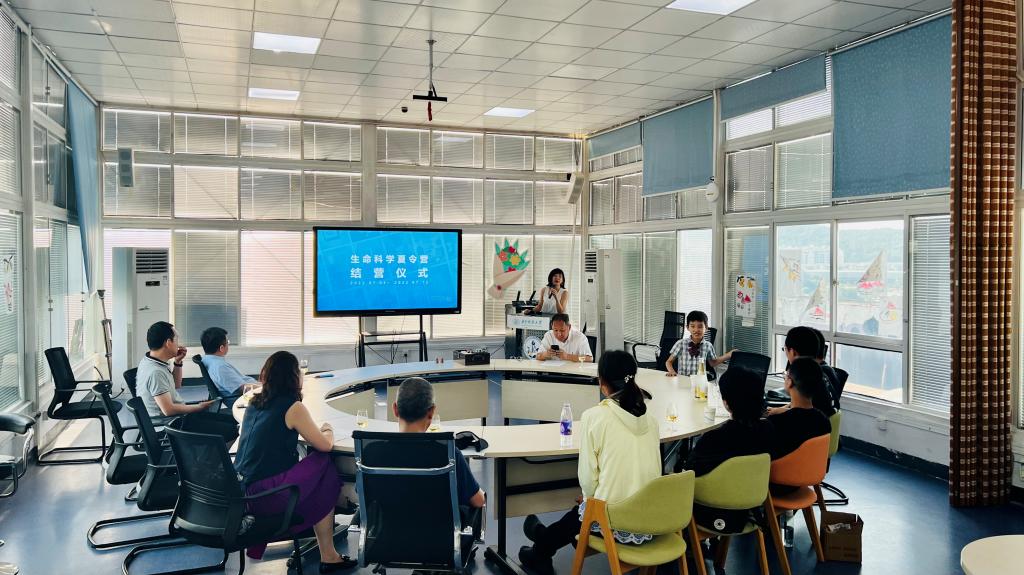 (通讯员 李秉章 黄洁)7月15日下午,2022生命科学夏令营结营仪式在公司9楼会议室举行。公司党委书记刘笔锋、经理刘剑峰、党委副书记占艺、副经理陈军、对外交流与合作办公室主任刘剑淼、部分夏令营教师以及部分中外合作办学项目2021级同学参加了仪式。结营仪式由公司外事专员李秉章主持。