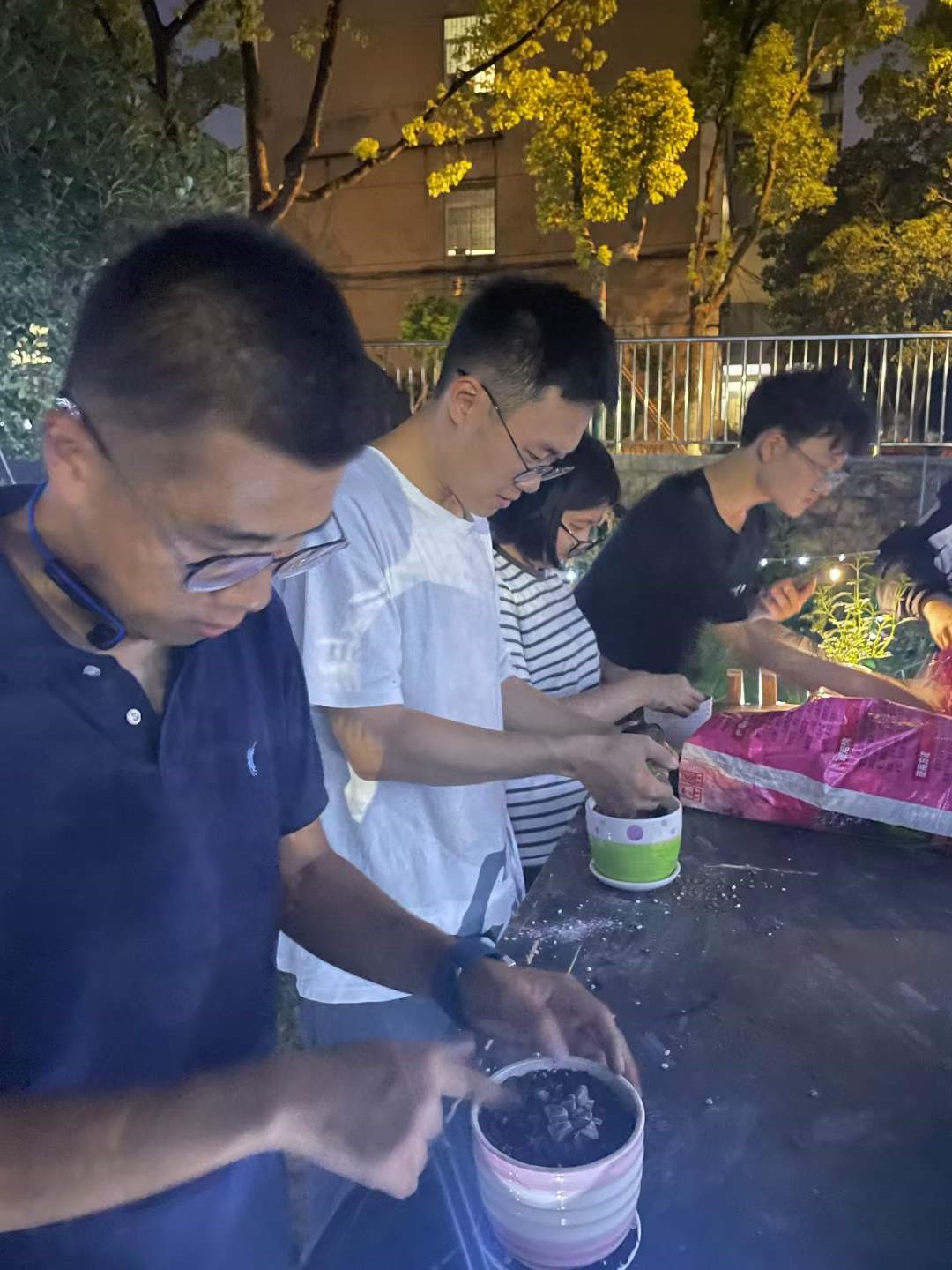 After dinner, we came to our little farm of Life. Looking down from the road, it looks like a small sea of stars reflected on the ground. Entering into the farm, walking along the flagstone road illuminated by the line lamp, and smelling the smell of the earth, we all felt relaxed and close to nature. After selecting potted plants such as succulent plants and rosemary, all the students listened to the teacher's explanation on this agricultural work. According to the guidance of the teacher, we carried out a series of work of filling, changing pots and watering, that is, transplanting before cultivating our own small potted plants. Some students mixed the nutrient soil after the initial soil was used up,the feeling of doing it just like mixing a face. There are also so-called techniques. Some students also met the weasel, a small animal , in the tool room nearby. After this agricultural activity, we harvested the small potted plants we would raise by ourselves, and experienced agronomy in person, and the beauty of the Bioscience was further improved. I hope this will stimulate our interest in studying biology in the future.