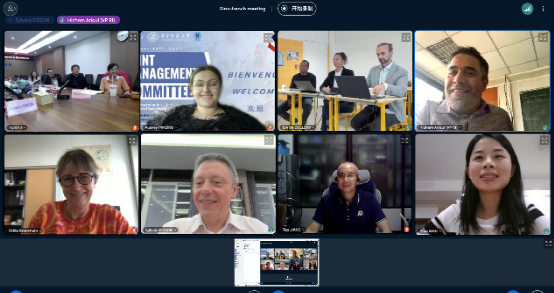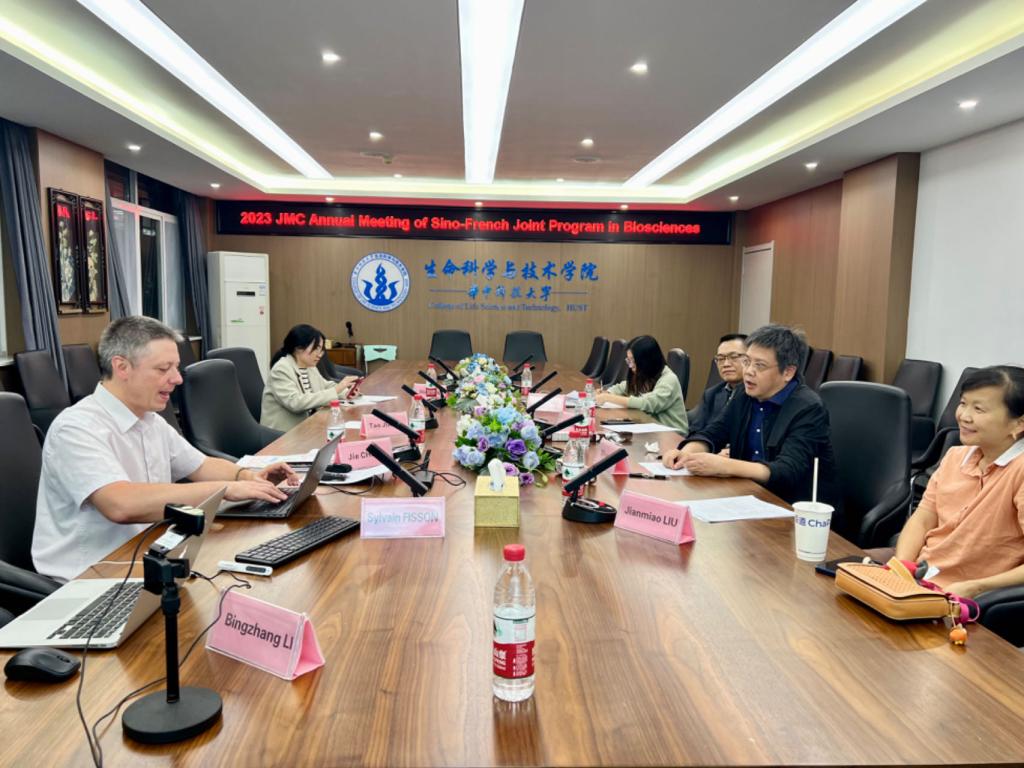1019日晚,第二届中外合作办学项目(生物科学专业)联合管理委员会年度会议顺利举行。中法双方代表回顾了中法生物科学项目2022-2023学年的办学进展,并就优化项目发展方案,提升项目办学质量,规划项目未来方向等重点议题进行了深入探讨。​公司党委书记兼联合管理委员会主席刘笔锋、副经理卢群伟、校国际交流处欧洲事务办公室主任万甜、中外合作办学项目办公室主任刘剑淼、中外合作办学项目教学负责人蒋涛、巴黎萨克雷大学国际硕士项目负责人Odile BRONCHAIN、埃夫里-巴黎萨克雷大学国际处处长Hichem ARIOUI、中法项目负责人Sylvain FISSON,以及中法双方项目管理团队出席了本次会议。会议由刘剑淼教授和Sylvain FISSON教授共同主持。