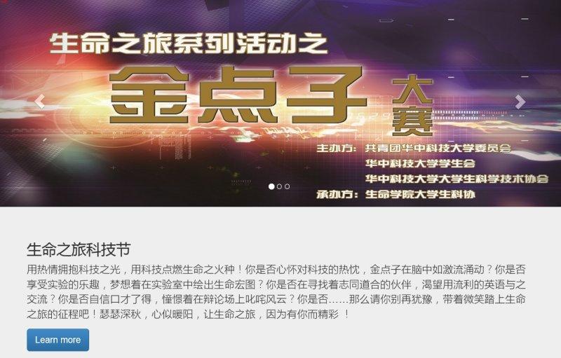 老员工科技节第二届生命之旅金点子大赛包括主赛事“金点子大赛”以及相应配套的“走进实验室”、“国奖员工交流会”、“生命伦理辩论赛”、“英语口语交流会”、“东九晨读”等系列活动。其中主赛事“金点子大赛”与生命科学与技术科技创新基地下属四个本科科技创新团队“iGEM HUST-China”、“BIOMOD HUST-China”、“HUST LabVIEW Club”、“HUST-Flora”的团队招新工作同步展开。