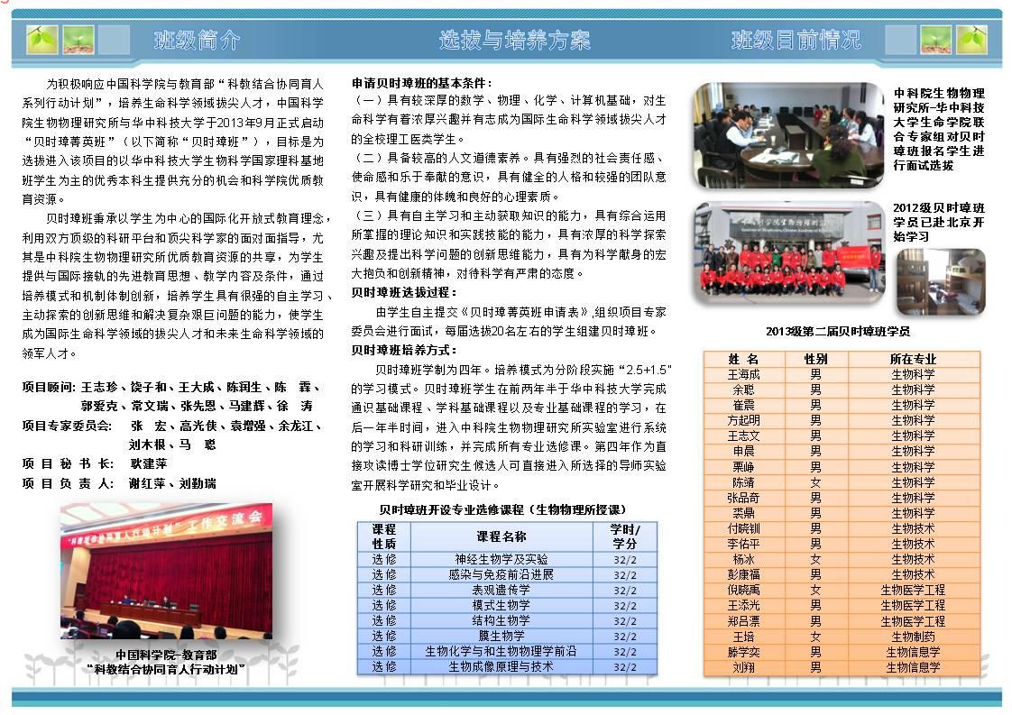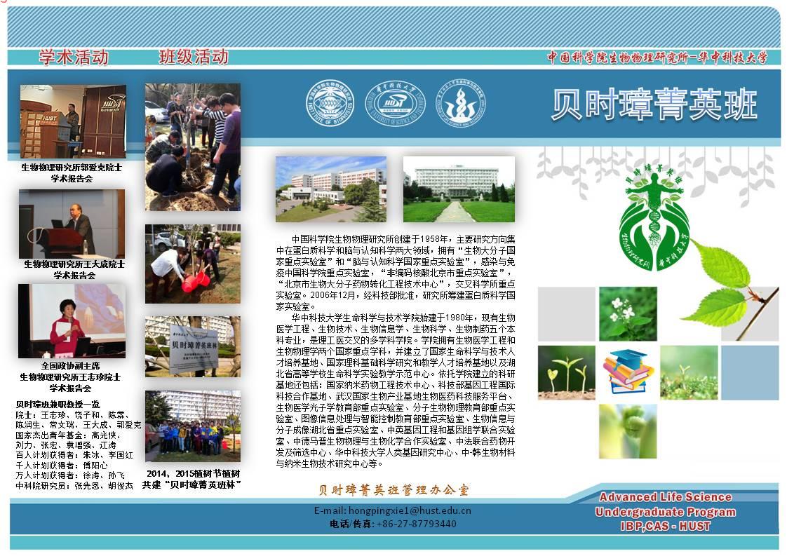 为积极响应中国科公司与教育部“科教结合协同育人系列行动计划”,培养生命科学领域拔尖人才,中国科公司生物物理研究所与必威西汉姆联官网共同建设“贝时璋菁英班”(以下简称贝时璋班),现面向必威西汉姆联官网本部14级本科生(不含生实、生卓)招募第三届贝时璋班学员。