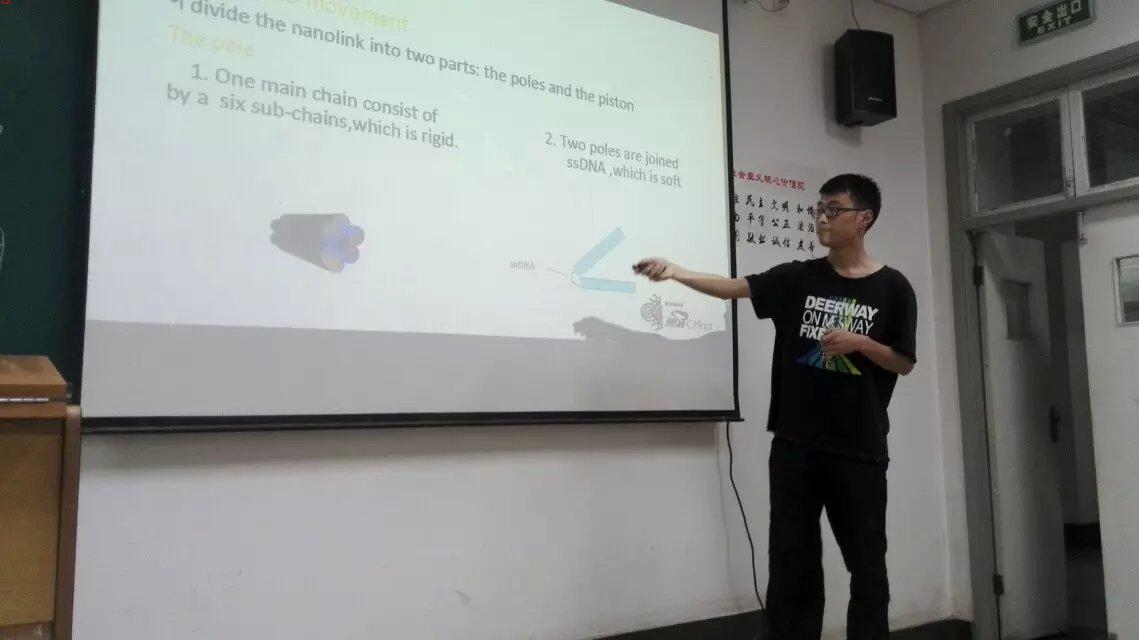 接下来公司创新团队BIOMOD的陈靖带领同学们走进了奇妙的立体DNA的世界,向同学们详细介绍了DNA分子折叠技术。在科学之旅后,BIOMOD队长吴松燐从五个方面为大家详细的介绍了BIOMOD团队,揭开了BIOMOD的神秘面纱。