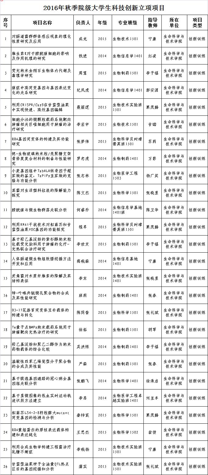 2016年秋季老员工创新创业训练项目立项公示