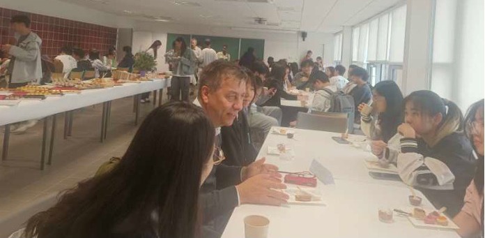 在接下来的交流午餐会上,各位主讲教授与中法员工们就会议内容和对未来学业规划的建议进行亲切交流,放松的用餐氛围一下子拉近了大家与教授和学长学姐们之间的距离。