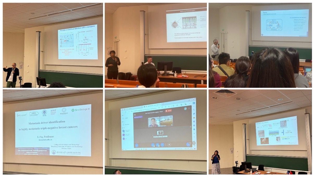 Professor Juan Pelta from France, Ms. Divya Ail, Mr. Bruno Figadere, and Professor Christelle Monille shared their fascinating research in the areas of nanoporous recognition, retinal degeneration treatment through viral gene transfer, the role of DOX series drugs in Parkinson's disease treatment, and stem cell for retinitis pigmentosa. Professors Bifeng LIU and Li SU from the College of Life Sciences and Technology at Huazhong University of Science and Technology also gave excellent presentations via video meetings. The themes of these two presentations were research on factors influencing breast cancer cell metastasis and the applications of microfluidic mechanics in biology. Following each presentation by the researchers, all the participants, including faculties and students, actively engaged in the discussion by posing insightful questions, contributing to a vibrant scholarly atmosphere.