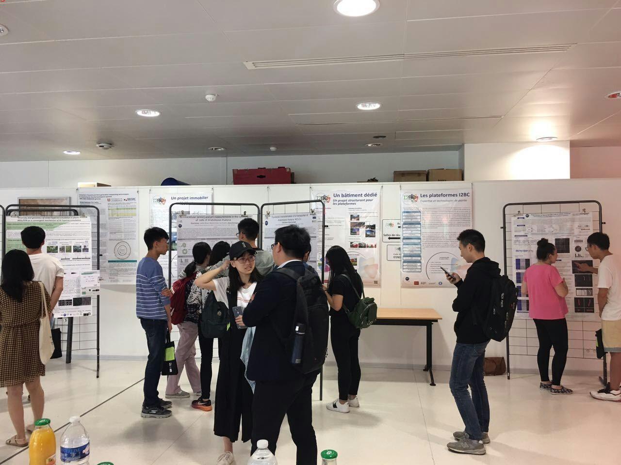 Lecture之后紧接着是poster session,来自I2BC的PhD students就自己所做的研究,对科学海报进行了讲解。大约有7个员工进行了海报的讲解,他们分别是一年级或者二年级的员工。海报展中大家注意到了几点非常有趣的内容:一是他们所采用的模式生物不同于我们多用的小鼠、线虫等模型,而多用擅用植物和细菌模型;二是课题新颖,如用植物富集镍,缓解环境和资源压力;构建pH和阴离子敏感的biosensor巧妙地检测了植物细胞对硝酸根的吸收;三是注重开放和交流,不仅乐于将实验思路和方法与我们分享,更是建立YOUR I2BC等员工组织促进世界各地年轻科研工作者之间的交流和进步。尽管大多数法国人不说英语,但这些PhD students的英文口语很流利,表达能力很强,国内的员工与他们差距不小,至少在英语表达方面。正因为如此公司进行暑假的英语集中培训很有必要,可以加强员工们的英语应用能力,培养国际化科研人才。在poster session期间,同学们都表现得很积极。