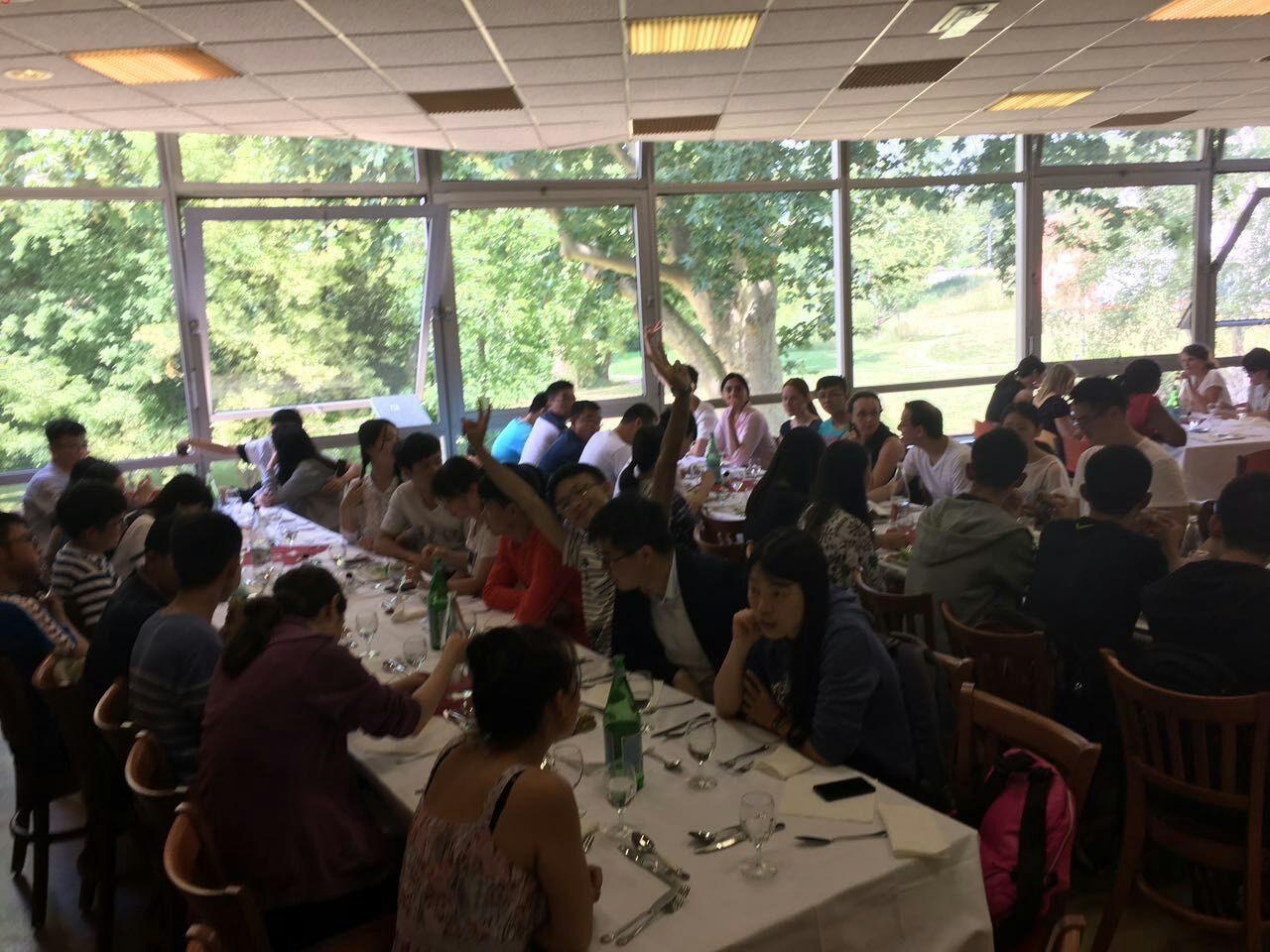 poster session有点意犹未尽,所以在午饭的时候大家仍然在继续讨论着科研、学习、生活。这些PhD students表现得很open-minded,而且他们也向我们的同学提了一些问题,比如问我们是否会来法国修习硕士或者博士项目。事实上,并不是所有的同学英语口语表达能力都很强,但同学们都很敢于开口,尽力说清楚自己的观点,珍惜宝贵的机会来锻炼表达技巧,that’s very nice!