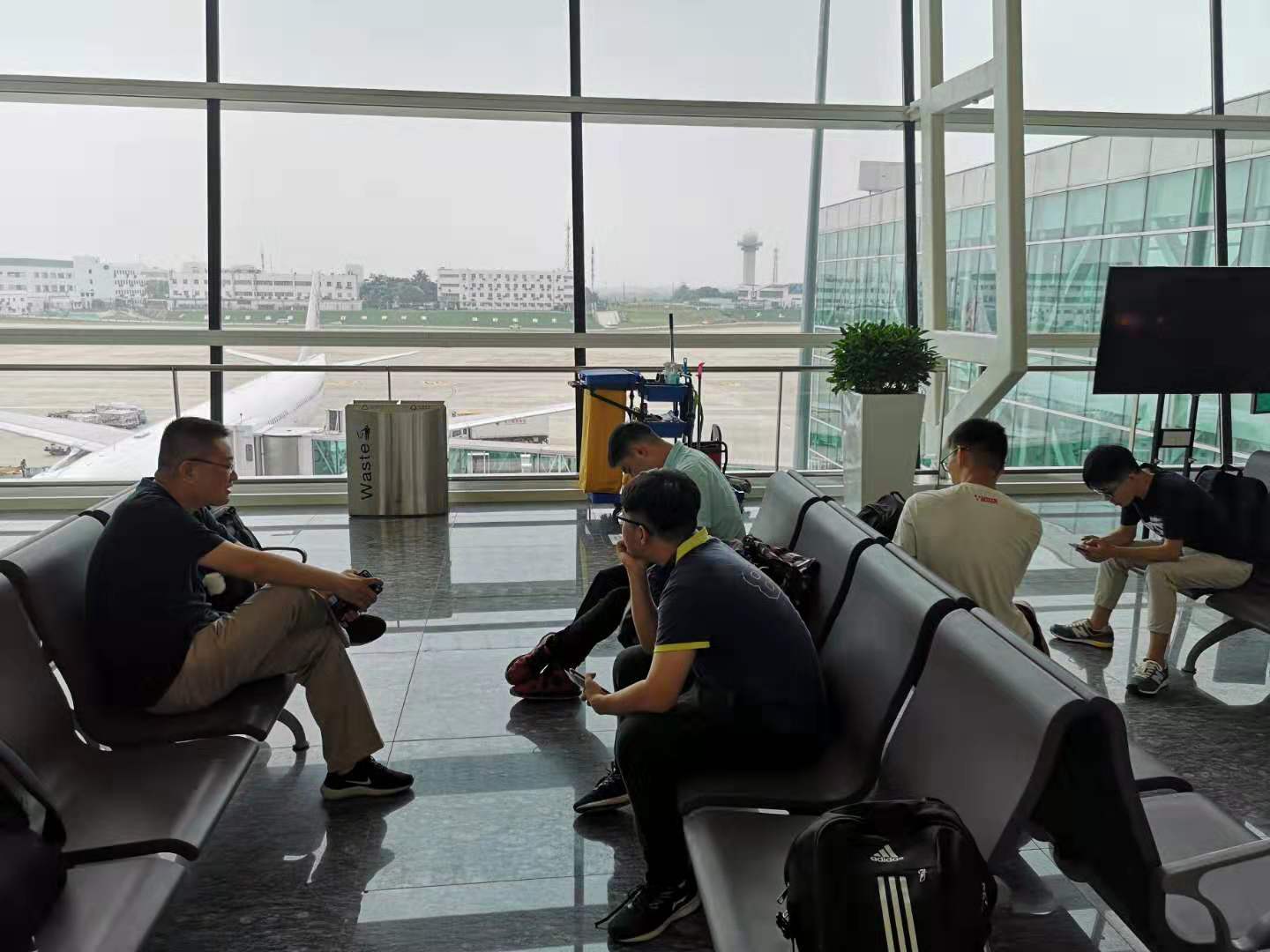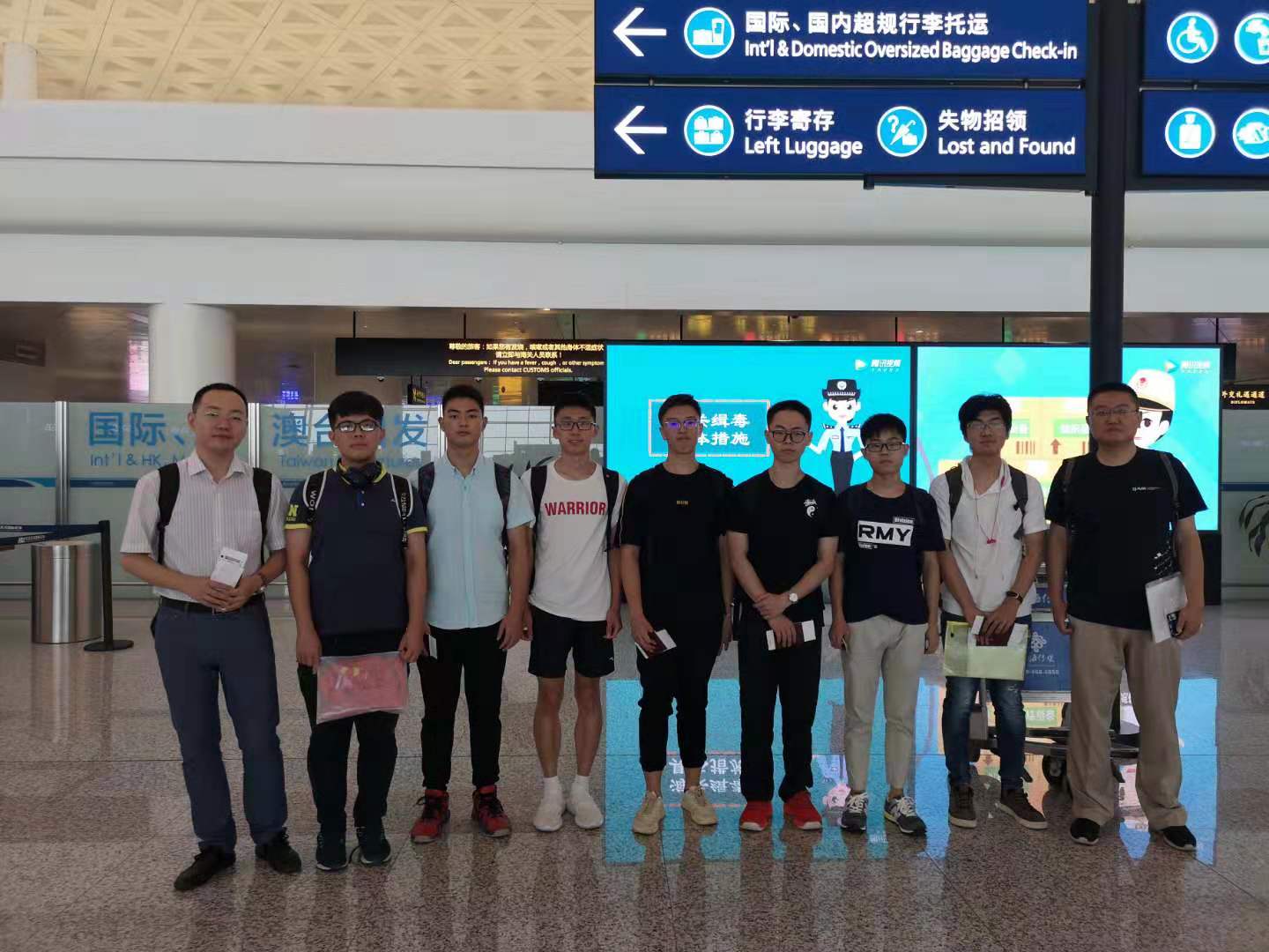之后经过安检,等待登机。在这样的碎片时间里,宁康教授开始和同学们进行计算生物学等学术内容上的交流,他以提问的形式,帮助同学们回忆、理解先前学习过的生物信息学等专业知识,既拉近了距离,也激起了同学们学习的兴趣。