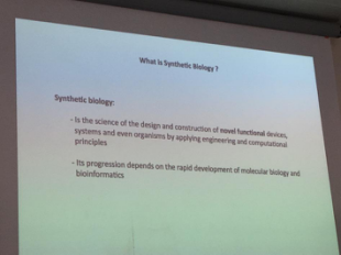 在上午的课程中,来自埃夫里大学的Bruno COLOMBO教授,为我们教授合成生物学相关知识。Bruno COLOMBO教授主要对合成生物学的起始、发展、前沿、目标以及实例进行着重阐述,尤其是让我们领会到合成生物学区别于基因工程的核心在于建立人工生物系统,让它们像电路一样运行。同时结合了涉及光遗传学、CAR-T等前沿技术的实例给我们描绘了合成生物学的广袤前景和应用范围。Bruno COLOMBO教授对合成生物学的讲解内容详实、覆盖面广,令人印象深刻。