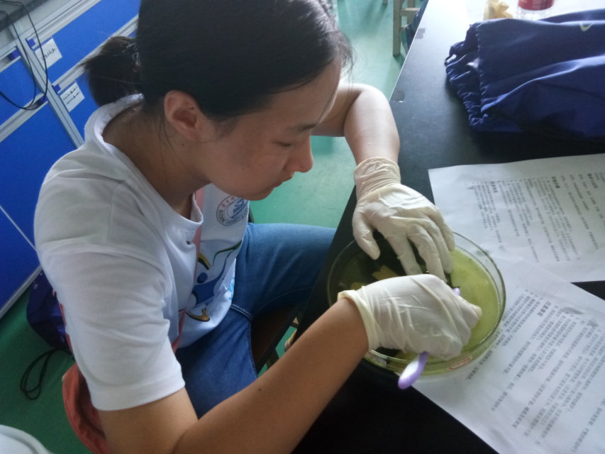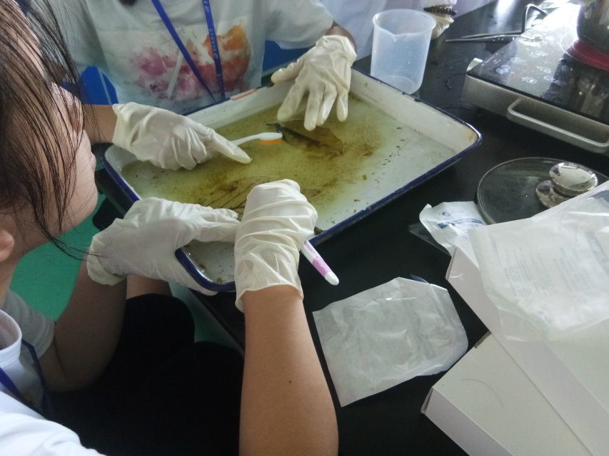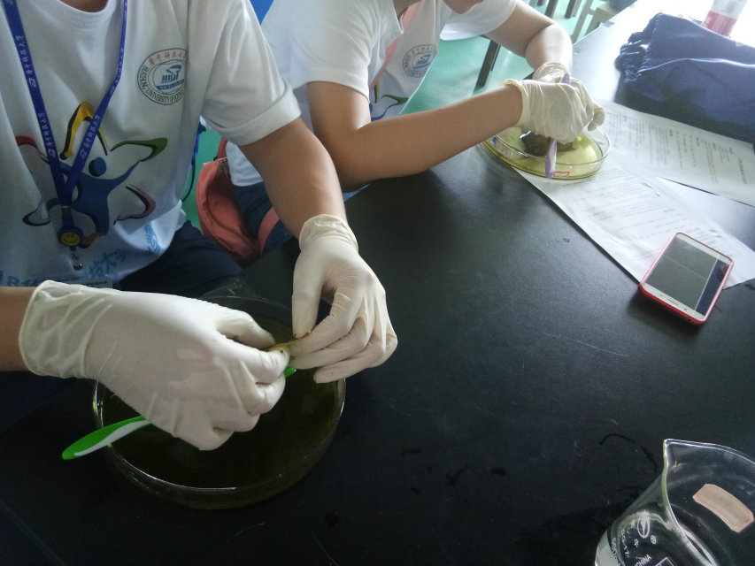 上午9时,iGEM队员为同学们详细讲解了本次趣味实验――“叶脉书签的制作”的要求与步骤,并带领同学们选择合适的树叶,完成实验的准备工作,随后指导同学们煮沸、刷净树叶,同学们热情高涨,细心完成实验内容。期间,有些同学的实验出现了些许困难,由于树叶状况不符合要求,本团队队员耐心的指导并重新为其选择了合适实验的树叶,这些同学们也在学长学姐的细心指导下完成了实验。下午制作完成后,同学们纷纷完成了自己的实验,看到自己制作的精美书签,现场氛围热烈,同学们都表现出了对生物实验的极大兴趣。