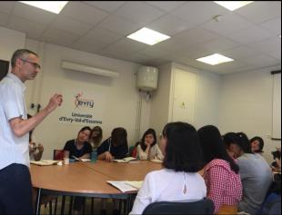 上午的时光多是在听报告中度过的。来自INSERM实验室的教授向我们介绍了其实验室关于微管方面的研究成果。微管存在于细胞质中,是构成细胞骨架的重要组成成分,它们可参与细胞内的物质运输、信号传递、细胞分裂等过程,在机体生命活动中起着重要作用。利用微管可运输物质的功能,可开发新的药物靶点,将药物分子特异性地运输到指定位置;第二点是关于RNA的调控中剪切因子对于RNA转录的影响,从DNA模板链转录出的最初转录产物中除去内含子,并将外显子连接起来形成一个连续的RNA分子的过程成为RNA剪接,该过程受很多种剪切因子的影响。若该过程中RNA的剪接发生错误,如单个剪接位点的增加或缺失便有可能造成神经退行性疾病(如阿尔兹海默症),因而深入研究RNA剪接的机理对治疗该类疾病有重大意义;第三点为TDP43蛋白在神经退行疾病中的作用,根据研究结果可推断阿尔兹海默症是可以在神经元之间进行传染的。