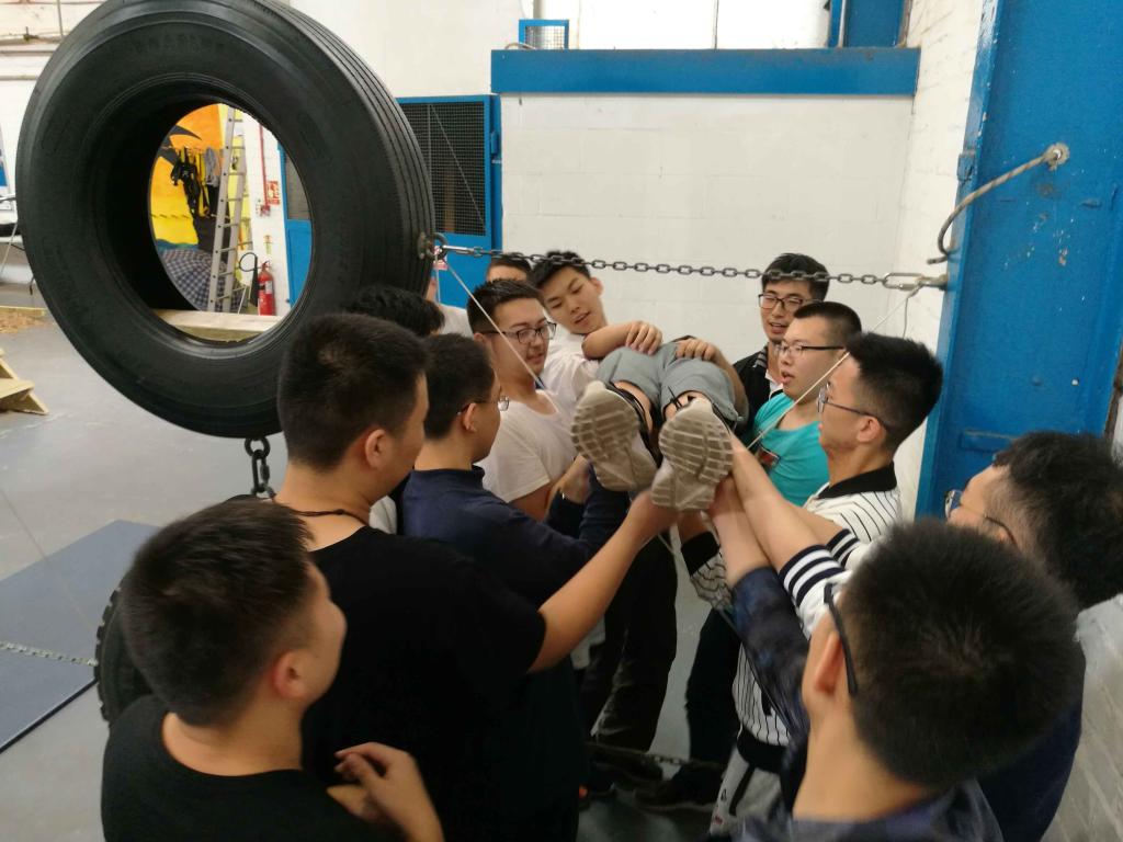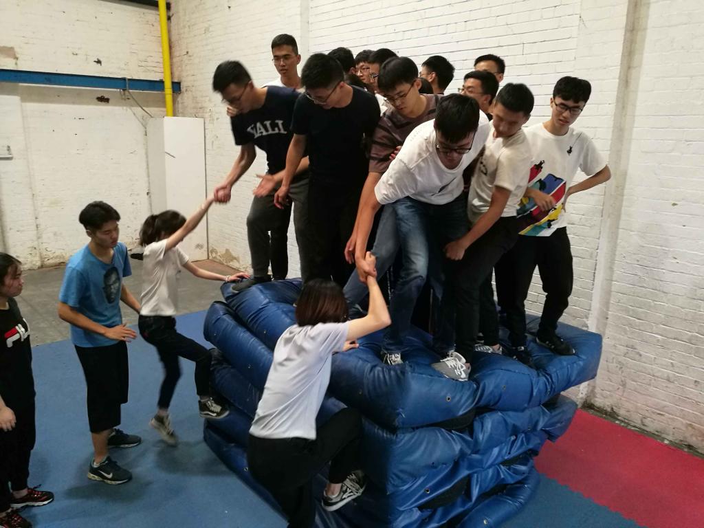接下来还有许多项目更要求我们的团队协作。有大家一起用垫子和轮胎来叠成一个生日蛋糕,到最后一层的时候,垫子的高度都超过了我们的身高,我们需要在这种情况下将所有人都拉到垫子上。虽然听起来和看起来都很艰难,但是在那个时候,不分男女,不分你我,大家齐心协力,完成了这项任务。