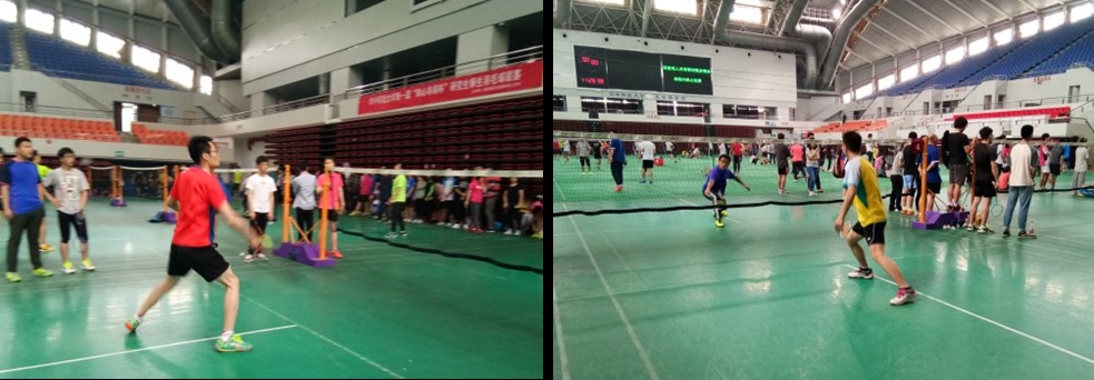 上午八点半,在师生们的热情欢呼声中比赛正式拉开了帷幕。本次比赛共分男子师生单打、女子师生单打、师生混合双打、师生女子双打、师生男子双打等七个项目。本着“友谊第一、比赛第二”的原则,运动员们斗志昂扬,竭尽全力。在师生们流着汗水的脸上,在不停关注比分的眼神中,不言放弃、永争第一的精神被表现的淋漓尽致,现场气氛“剑拔弩张”。在三轮的小组赛结束后,公司师生队成功的进入到下一轮的淘汰赛中。夏帅博士不骄不躁,稳扎稳打,运用点杀、扣杀、网前放小球等一系列高水准击球技术,在男子单打中脱颖而出,其帅气的身影在赛场上成为一道靓丽的风景线。在女子教师、员工单打的比赛后段,马富英副教授和刘青云博后在虽已体力耗尽,但仍然坚持不懈,不断竞争交替上升的比分,不禁让人感叹巾帼不让须眉。最后公司在淘汰赛中以4:3惜败化学公司,为此次比赛拉下了帷幕。