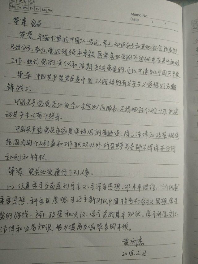 【支部风采】践行“两学一做”,本科15级党支部连续手抄党章62天