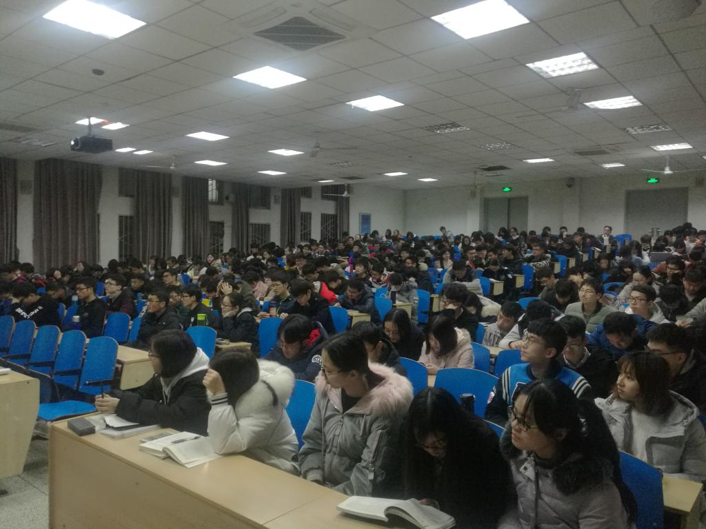 首先进行的是年级大会,辅导员段政依次介绍了当前同学们需完成的各项事务,并就年级员工会人员的调整做了说明。随后将上学期各班的学习情况进行梳理和分析,最后通报了本学期年级打算开展的各类活动,并为同学们的学习生活提出了一些建议。