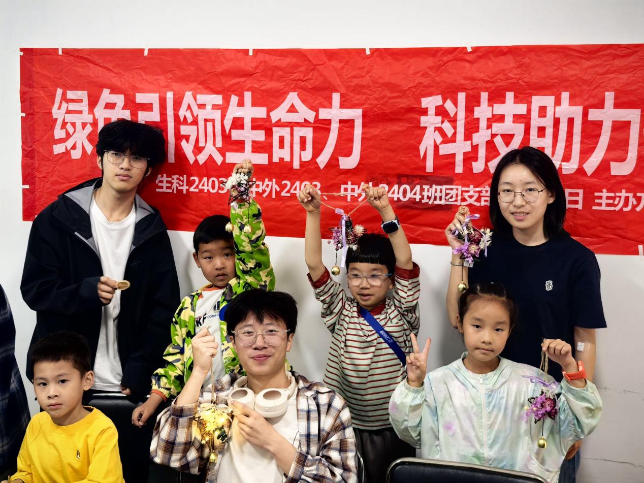 4月19日,生医2402、中外2403、中外2404、生信基地2401团支部联合走进紫菘社区,以“共赴自然之约,绘就春日华章”为主题,通过科普课堂与创意工坊的创新形式,为社区儿童开启了一场沉浸式自然探索之旅。