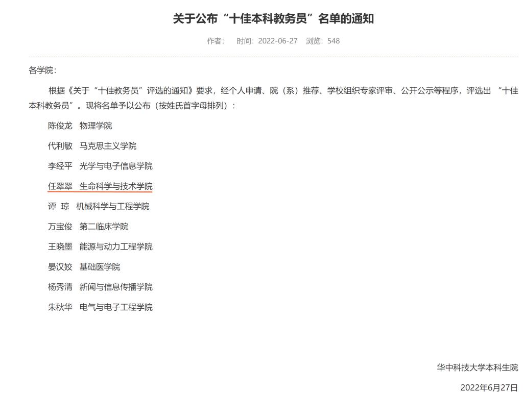 6月27日,必威西汉姆联官网本科生院公布了首届“十佳本科教务员”的评选名单,公司任翠翠老师荣获殊荣。