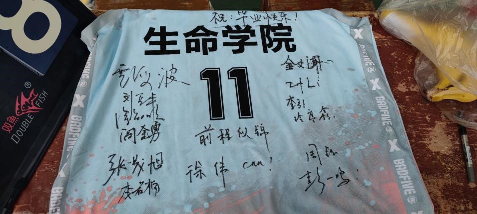 一场精彩激烈的师生友谊赛拉下帷幕,师生双方纷纷握手拥抱致意,合影留念。活动结束,老师们还纷纷在毕业生球衣上写下毕业寄语,祝福2022届毕业生前程似锦,毕业快乐!