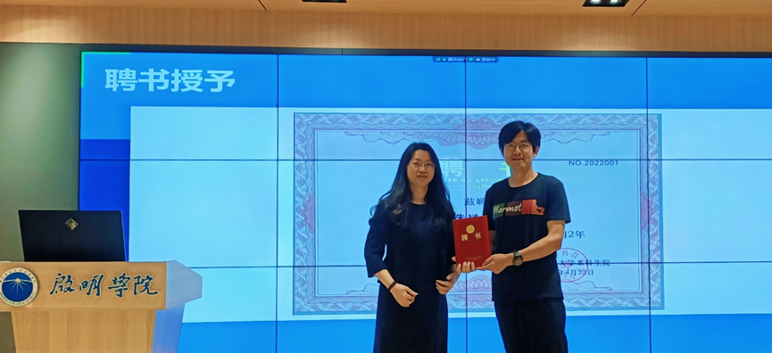 沙龙开始前,启明公司副经理王琳玲教授为朱斌颁授了“必威西汉姆联官网创新创业导师”的聘书。