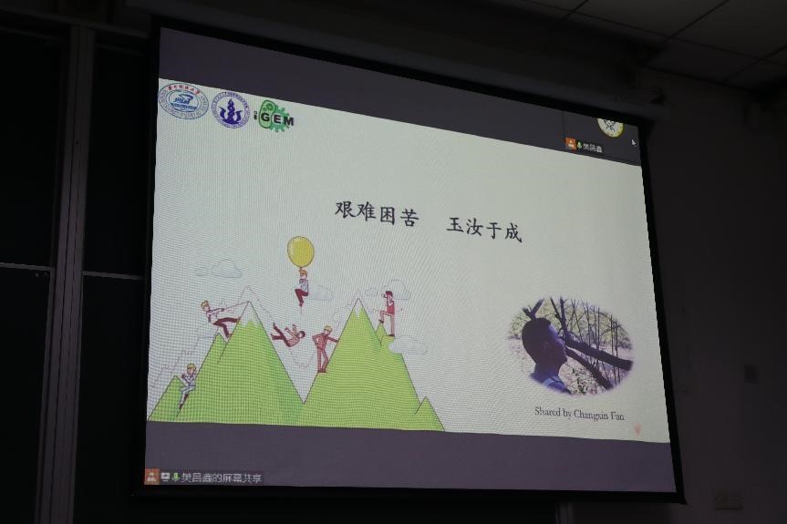 樊昌鑫是2021年iGEM金奖、生物+金奖的获得者。他说到,首先要寻找项目,有三种途径,一是大创训练,二是加入导师课题组,三是加入科研团队。其次寻找队友时根据研究需要做到多专业交叉融合、优势互补。团队内部合理分工,提高研究效率。他强调,平时做到三点,能提升科研素养,多读Science、Nature上发表的文章有助于科研思维的培养、关注阅读相关公众号拓展知识面、关注创业方面的信息提升综合能力。他对自己的科创经历进行了总结,要明确研究目标,选择人民生活中痛点,找准奖项定位;制定计划,并定期总结归纳;矛盾是不可避免的,但要统一团队思想。最后,樊昌鑫用“艰难困苦,玉汝于成”激励大家奋勇前进。