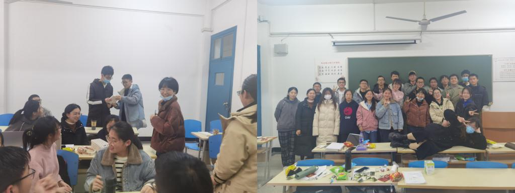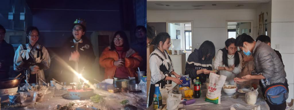 生科2001、2001班也在这个具有仪式感的节气联合开展了团建,并邀请了教师班主任贾海波老师、黄思罗老师。各种口味的饺子馅满足了来自天南海北同学们的不同饮食习惯,大家还相互交流不同的包饺子方法,齐心协力做出的一大桌菜色香味俱全,其后的生日会也倍增班级的家庭感。师生在娱乐中交流近期的学习生活,在冬至的夜晚为即将到来的新年开启了更多期待。
