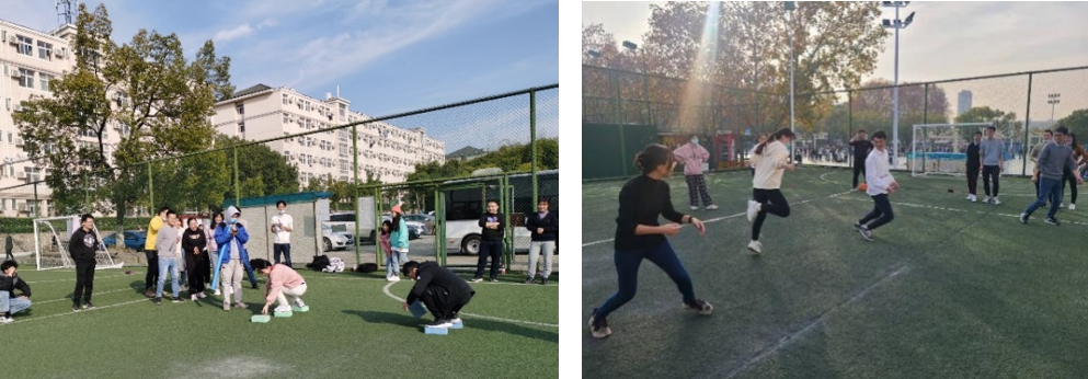 本次活动共设置了“摸石头过河“、跳绳、踢毽子、丢沙包等七个游戏,各支部参与人员分成若干小组,通过组队积分的形式比拼名次。各组同学在比赛中充分发扬了团结合作精神,在各个项目中拼尽全力,使运动会既具有趣味性,又充满挑战,赛场上不断飘荡着同学们的加油呐喊声。一起参加游戏的老师更是操作敏捷、行动平稳,引得观赛的同学们鼓掌称赞。最终,经过两个多小时的激烈角逐,运动会在愉悦的氛围中落下帷幕。