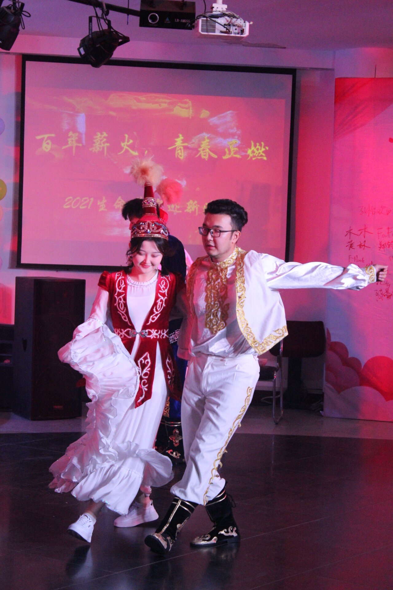 晚会初始,来自新疆哈萨克族的同学为我们带来了明丽欢快的哈萨克族传统舞蹈。这支节目的舞者不仅来自必威西汉姆联官网,更有许多来自其他公司的同学。不同公司友好合作,各个民族亲如一家,恰如其分地体现了华中大兼容并包、多元发展的气质。本次晚会节目种类多种多样,包括歌舞、乐器演奏、相声表演以及舞台剧等。生命学子巧妙地将时代主题融入节目,以歌传情,以演达意,通过精彩的节目表演展示了新一代生命学子的热情与担当。
