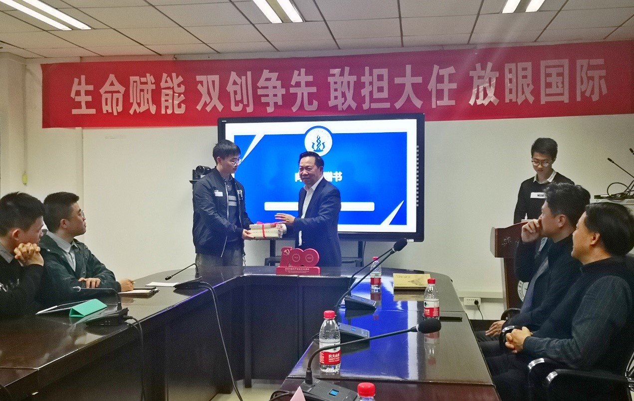 陈建国听完同学和老师们的介绍和分享后,对班级取得的成绩、公司相关老师的投入表示了充分肯定。他表示,生物技术系培养的人才“顶天立地”,不仅开展劳动教育,让同学们下地体会劳动的意义,还引领同学们学习最新前沿科学技术,走出校门、走出国门展现华中学子争先创优的风采。他提醒同学们在知识爆炸的时代注意信息甄别,脚踏实地学习本领,扩展视野,扩大格局,为实现中华民族伟大复兴的中国梦贡献自己的力量。最后他向班级赠书,表达对同学们的美好祝愿。