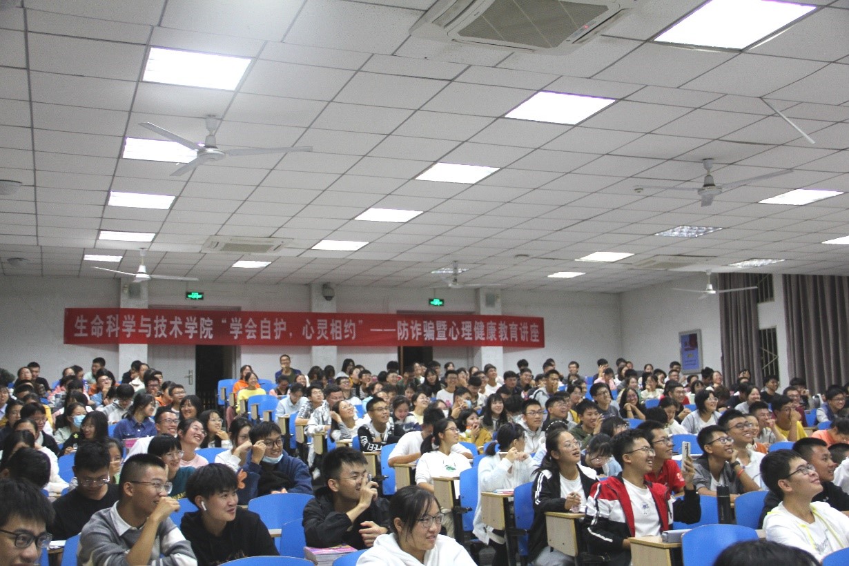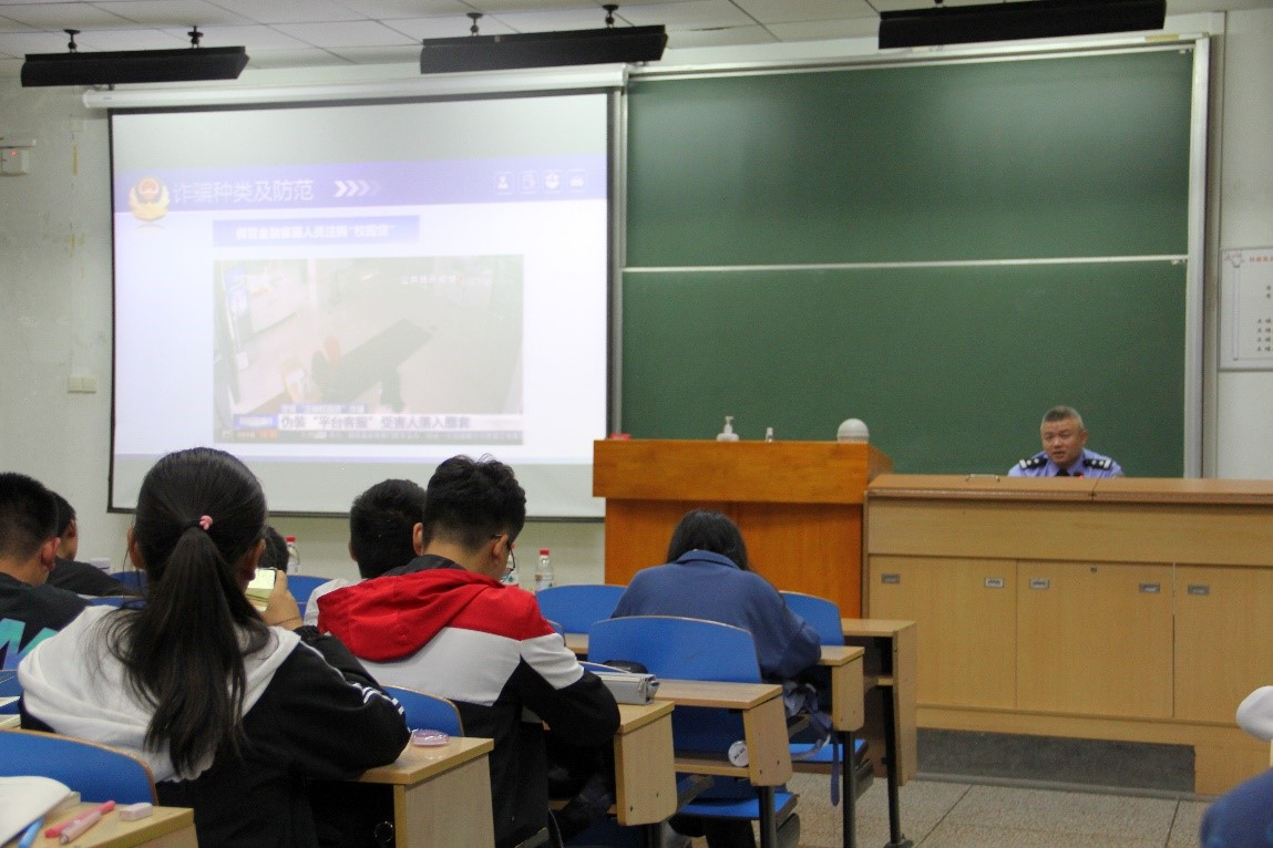 叶所长首先从员工宿舍安全、校园公共场所防盗两个方面入手,结合视频讲解介绍了现阶段的主要校园安全问题。随后介绍了几种常见的诈骗手段——网络诈骗、电信诈骗和接触诈骗,叶所长通过案例具体分析了犯罪分子常用的套路并且介绍了反制措施,推荐下载“国家反诈中心APP”,要求同学们牢记“八个凡是”的原则,守好自己的钱袋子。最后,叶所长给大家播放反诈骗教育的“彩蛋”视频,视频生动有趣,贴近同学们的生活实际,大家在认真观看、交流中笑声不断,将各种实用的防骗小技巧自觉铭记心中。