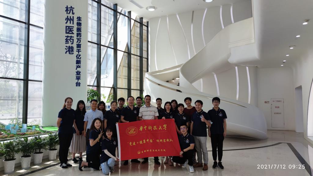 当天下午,社会实践队参观了杭州医药港小镇展厅、杭州医药港小镇党群服务中心,并前往杭州景杰生物科技有限公司、杭州金诺医学检验所展开调研。“党建+健康中国”实践队走进医药港,目的是了解政府党建在产业集群的推动作用,了解生物医药产业发展现状,更加坚定“四个面向”,投身健康中国建设。