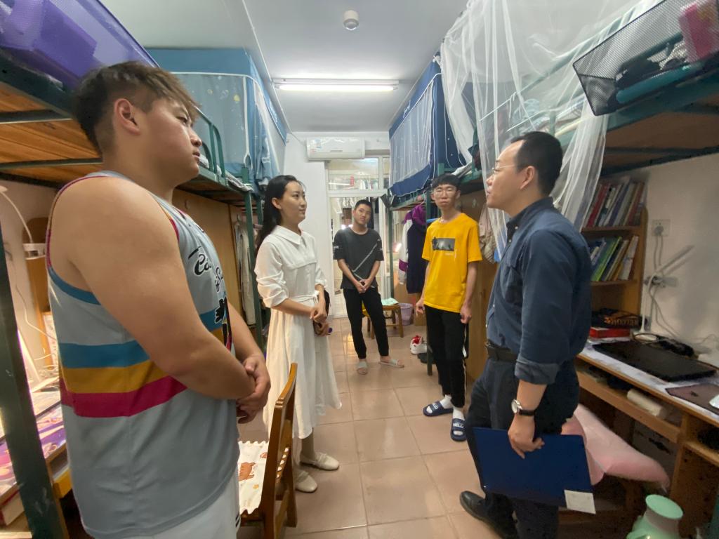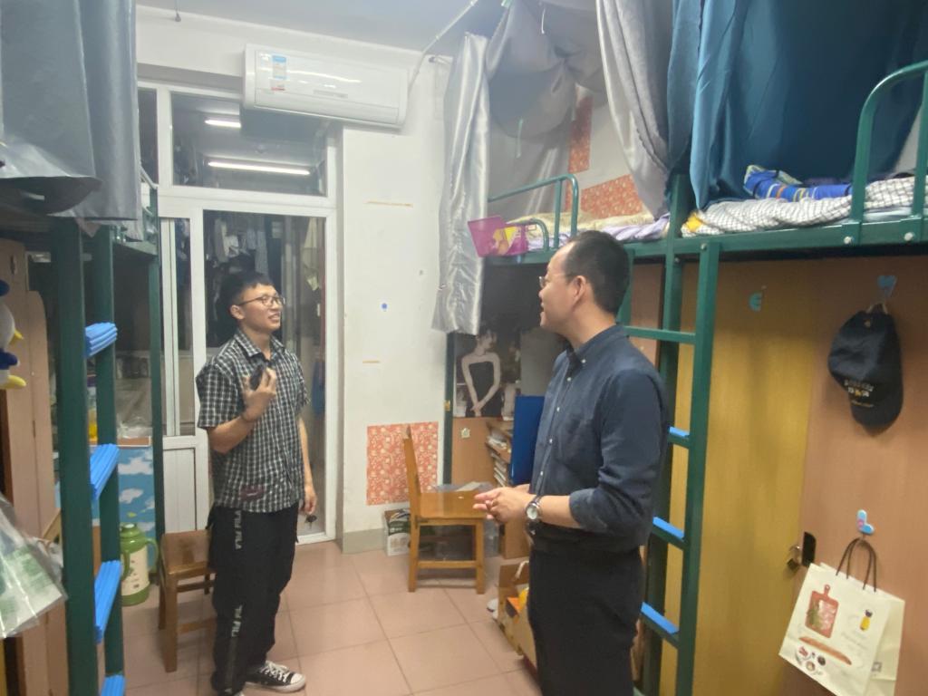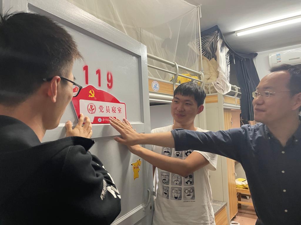 各年级辅导员一行走访了韵苑27栋、21栋、15栋、3栋等宿舍,就学习情况、返校过程、宿舍安全卫生条件等方面与员工进行交流沟通,并叮嘱员工注意宿舍卫生,在疫情防控常态化的背景下保证身体健康、顺利完成学业任务。各年级辅导员就如何规划好大四学期学习生活进行了深入交流;提醒辅导员牢牢掌握17级每一位员工的毕业去向动态,开展点对点就业帮扶,力争让每一位员工毕业不掉队;同时表扬了低年级宿舍整体的学习氛围,并强调要将集体学习的精神传承下去,继续发扬“学在华中大”的精神。辅导员老师为党员寝室举行挂牌,亮出党员身份,做好服务,并叮嘱员工党员,党员寝室即是一份荣誉,也是一份责任,要时刻牢记“坚持全心全意为人民服务”的宗旨,发挥好党员的先锋模范作用。