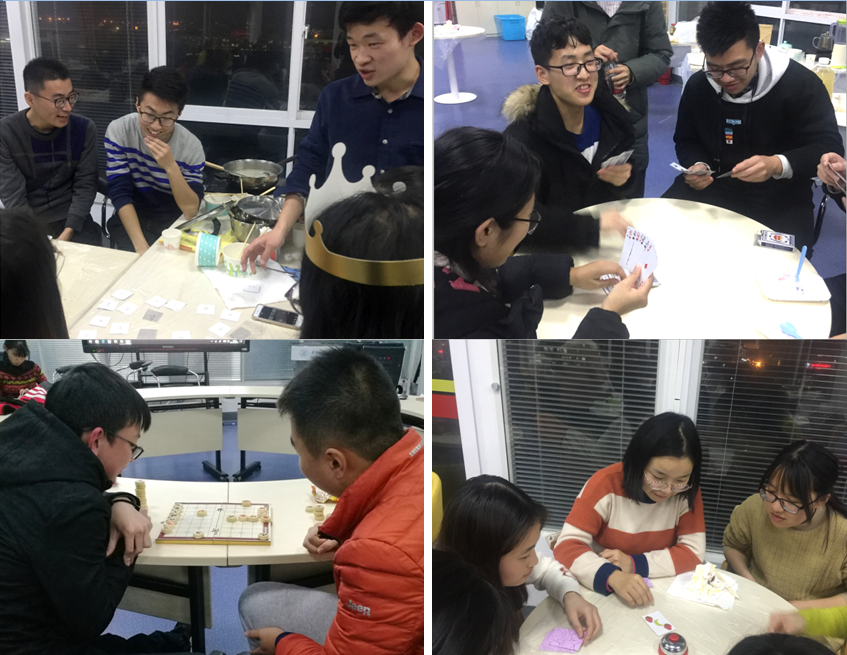 有了老师们的大力支持和前期宣传,本次活动得到全体同学的响应。大家一起自制了不同地域和风格的特色美食,其中不仅有节气特色美食“北方水饺”、“手工汤圆”和“冬酿酒”。还有多种具有公司或公司特色的美食,例如公司发酵实验课程中开发的“二发面包”,全校公选课《营养与健康》上广受好评的“台式黑芝麻绿豆糕”和“坚果蔓越莓饼干”,公司精准扶贫项目中诞生的高科技“纯造普洱茶”,由本班大创团队成员自制的“即食香菇罐头”也派上了用场。当然,同学们还根据自己的喜好,购买了各类食材和零食,营养火锅、麻辣火锅、安心鲜榨果汁、健康鲜奶奶茶、配合火锅的仙草冻、香气四溢的热干面…各种美食发掘了同学们的动手能力,也让天南海北的同学都能体会到自己家乡的年味。除此之外,班委们还精心准备了许多小游戏和奖品,让活动内容更加丰富。